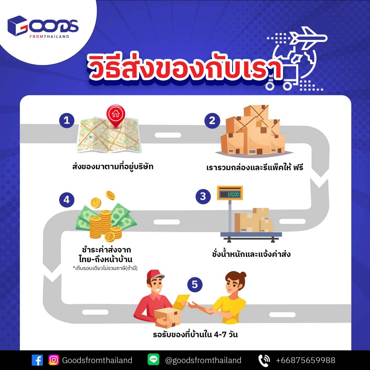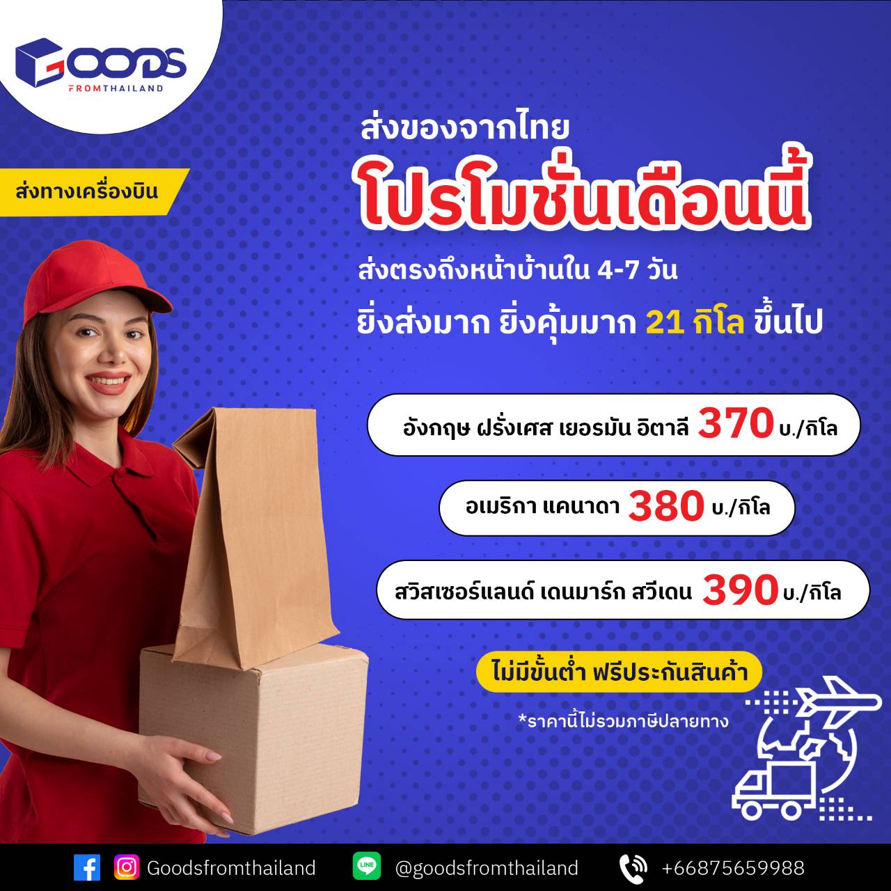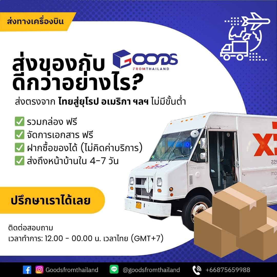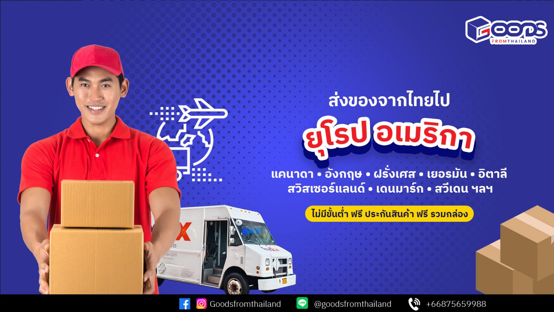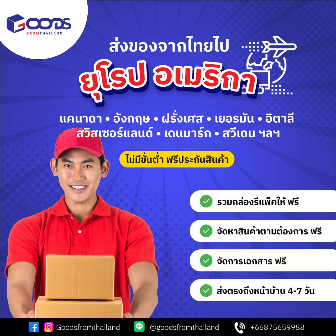 ส่งของจากไทยไป ยุโรปและอเมริกา กับ Goods from thailand อเมริกา แคนาดา อังกฤษ ฝรั่งเศส เยอรมัน อิตาลี สวิสเซอร์แลนด์ เดนมาร์ก สวีเดน ฯลฯ รวมกล่องให้ฟรี ไม่มีขั้นต่ำ ชิ้นเดียวก็ส่งได้ ส่งตรงถึงหน้าบ้าน